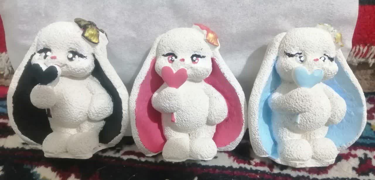 خرگوش سفید قلب به دست سنگ مصنوعی دکوری